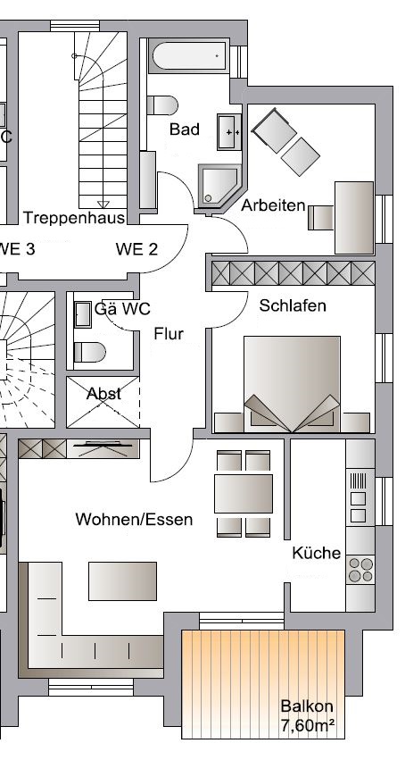 – offener Wohn-/Ess-/Küchenbereich mit Austritt zum Balkon